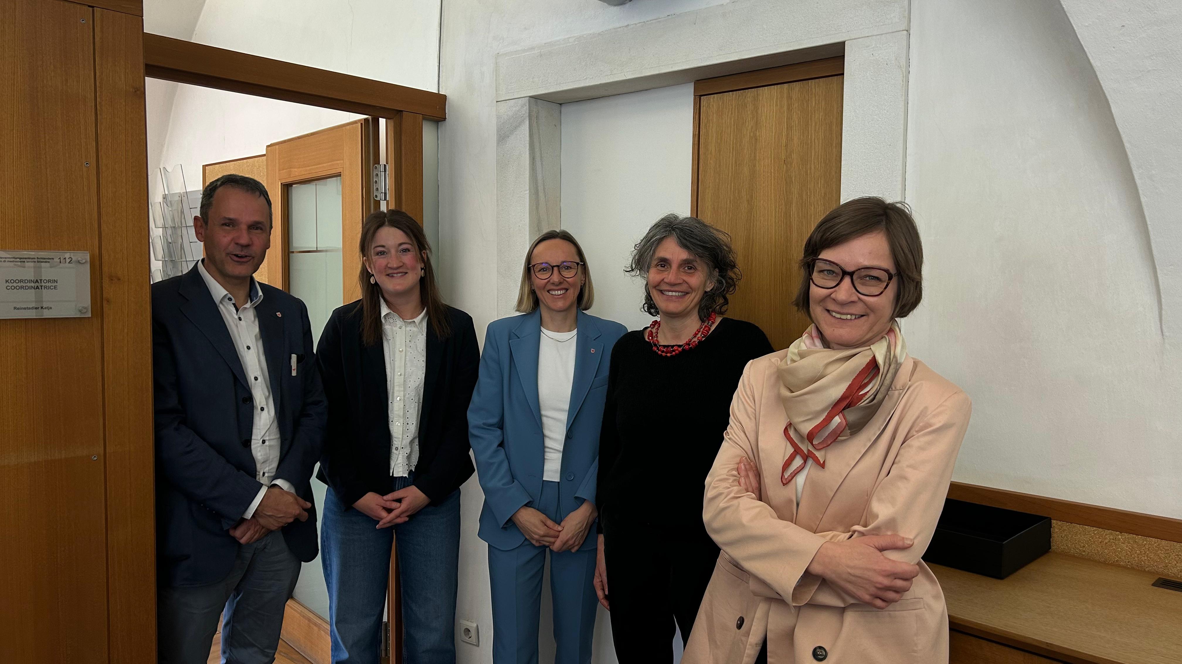 Das Arbeitsvermittlungszentrum (AVZ) Schlanders wird seit Dezember 2025 von Katja Reinstadler geleitet, die damit die Nachfolge des langjährigen Koordinators Robert Grüner angetreten hat. Im Rahmen eines Besuchs vor Ort verschaffte sich die Landesrätin einen umfassenden Eindruck von der aktuellen Situation, führte Gespräche mit den Mitarbeitenden und nahm deren Anliegen auf.