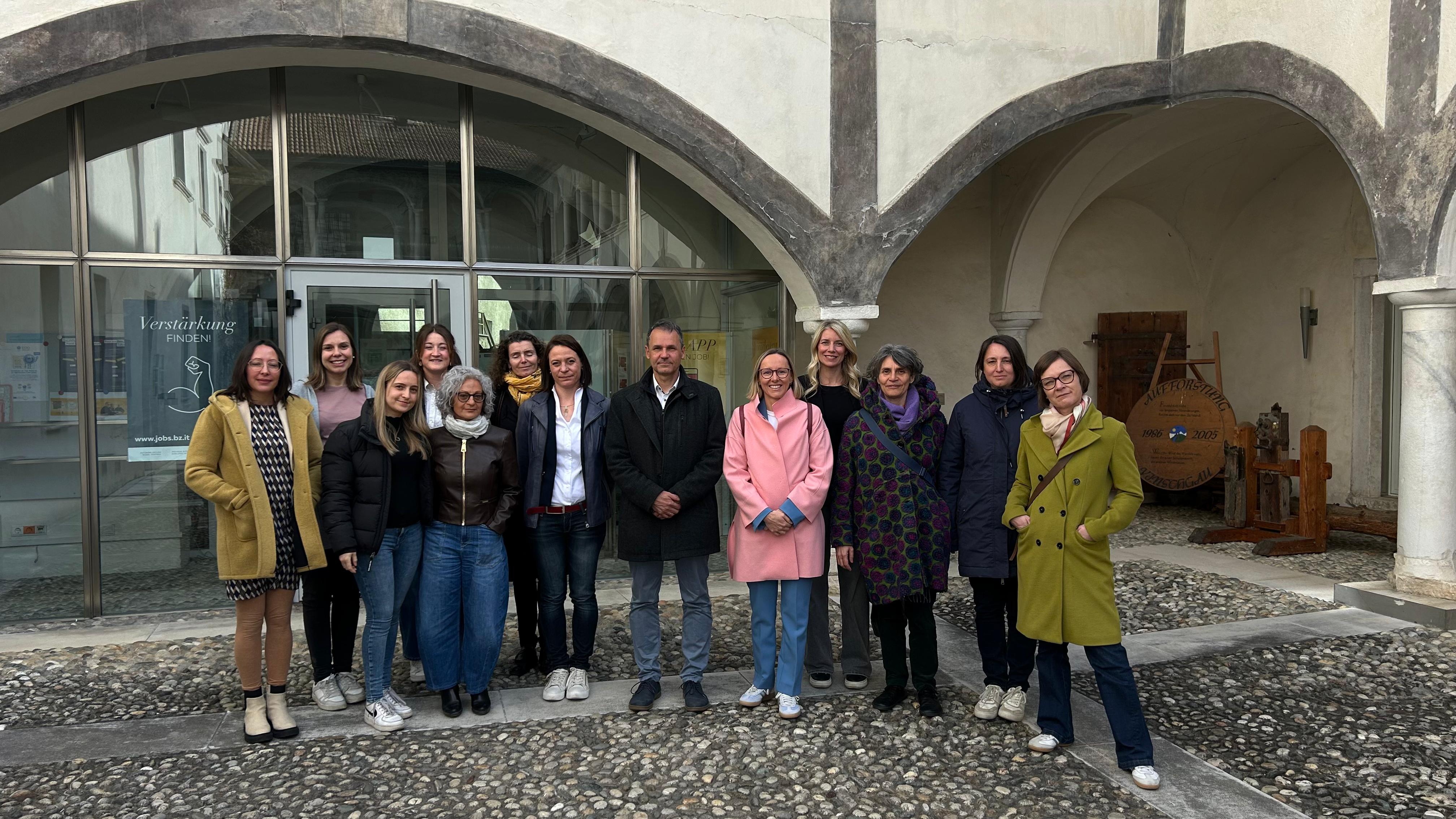 Arbeits-Landesrätin Magdalena Amhof (Fünfte von links) mit dem Team des Arbeitsvermittlungszentrums Schlanders und Mitarbeitern des Ressorts. (Foto: LPA/Ressort Europa, Arbeit und Personal)