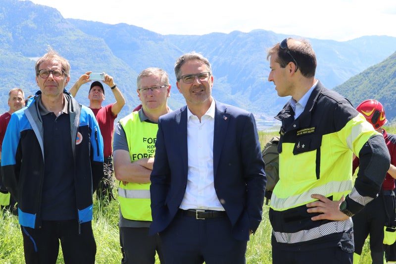 - Landeshauptmann und Bevölkerungsschutzlandesrat Arno Kompatscher (im Zentrum) im Austausch mit Landesforstkorps und der Berufsfeuerwehr, die gemeinsam die Waldbrand-Übung organisiert haben. (Foto: LPA/Maja Clara) » [IMG 1 MB]