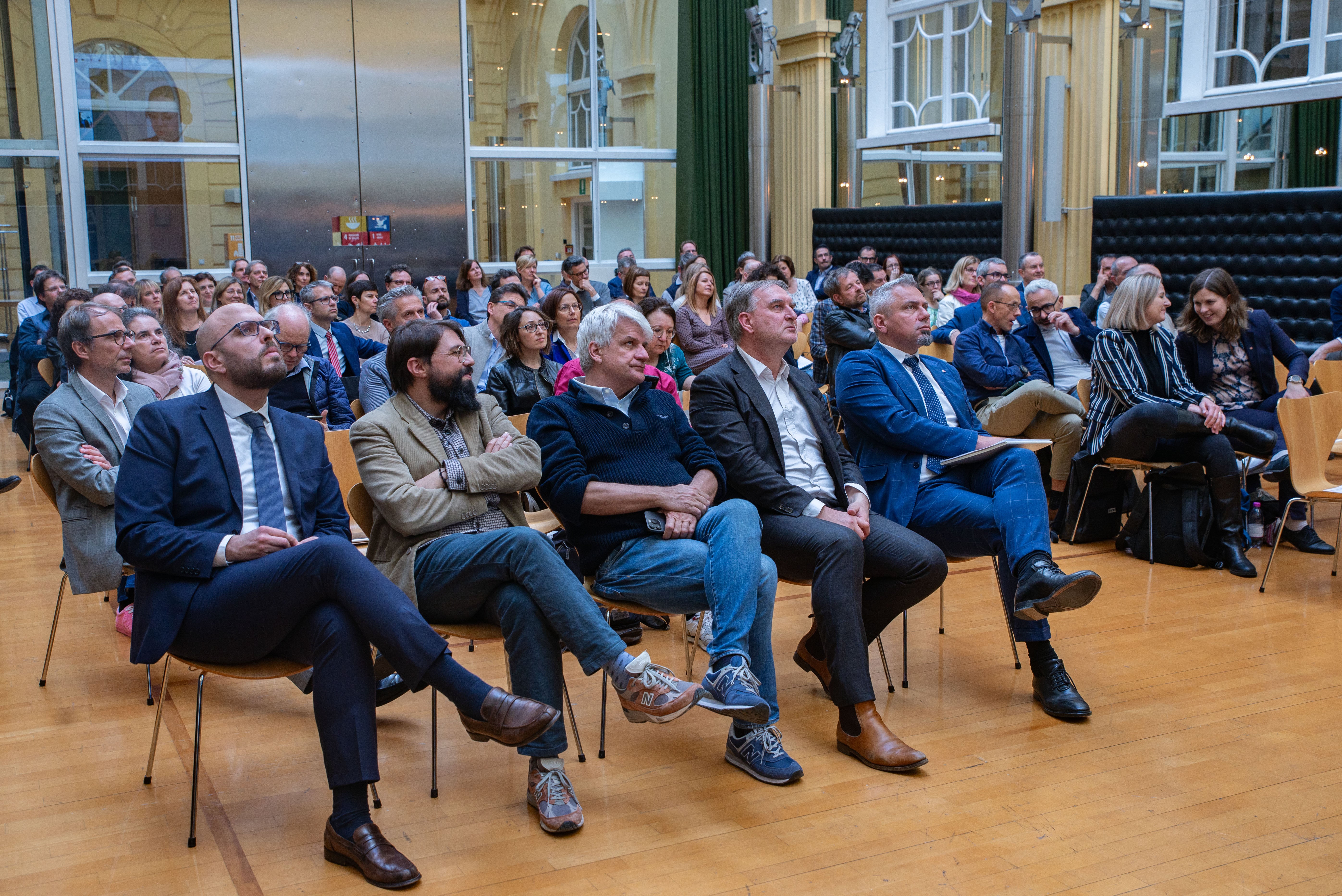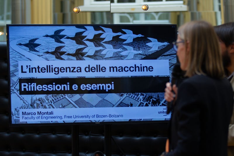 - "Künstliche Intelligenz liefert faszinierende Ergebnisse, hat aber auch Grenzen", sagte Professor Montali (stehend) von der Freien Universität Bozen. (Foto: LPA/Greta Stuefer) » [IMG 2 MB]