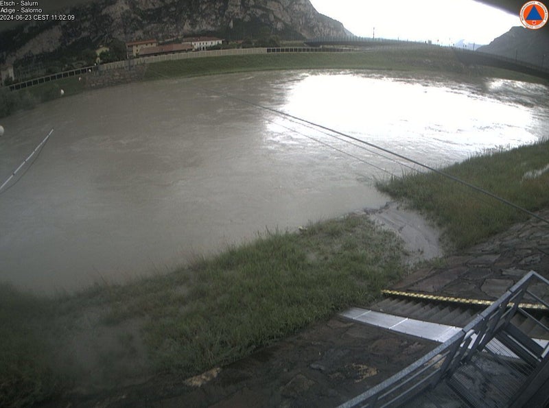 - Die Pegelstände aller Fließgewässer in Südtirol sind rückläufig; im Bild der Pegel der Etsch bei Salurn heute vormittags. (Foto: LPA/Webcam Landesamt für Hydrologie und Stauanlagen) » [IMG 144 kB]