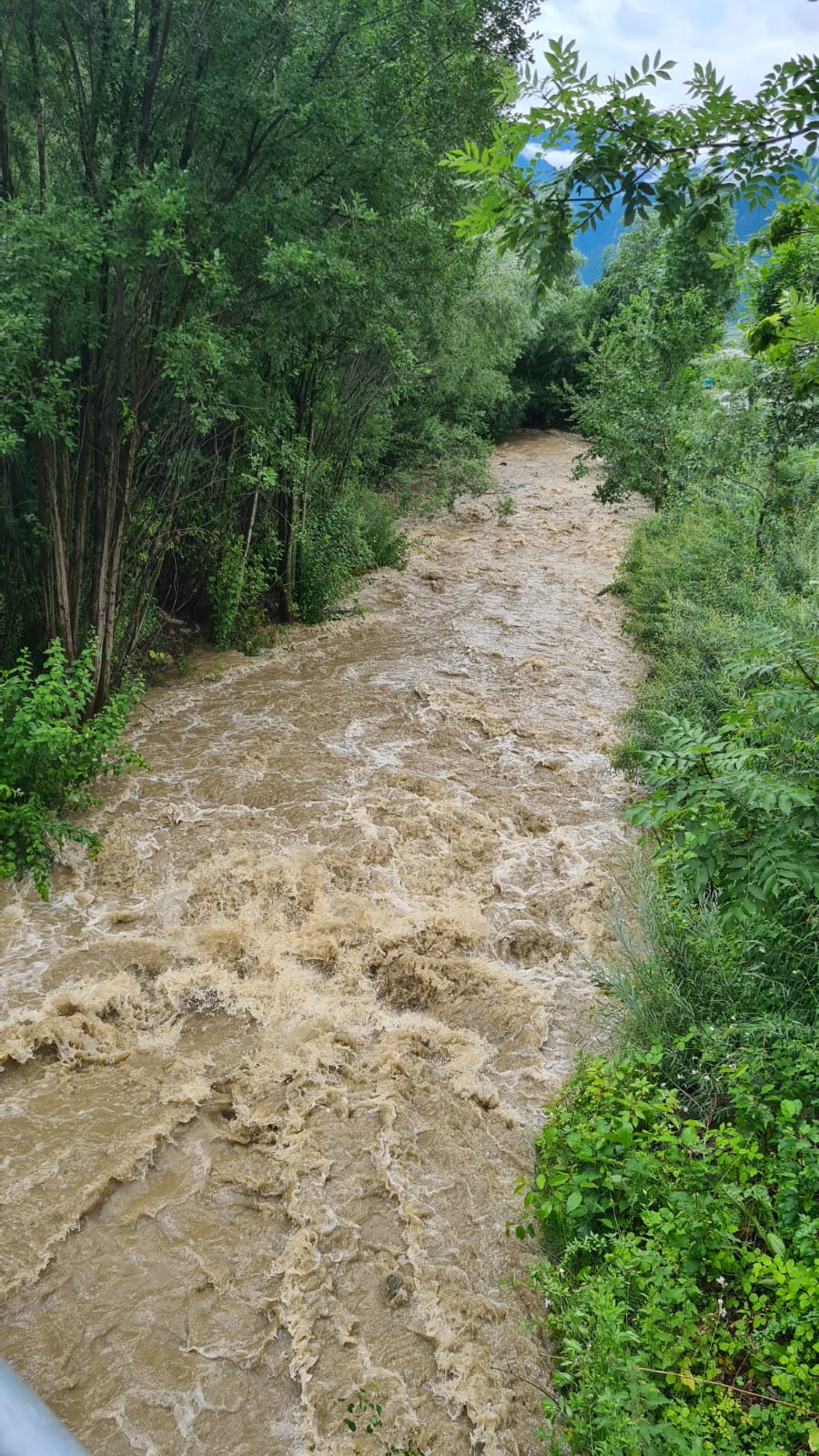 - Der Schlandraunbach in der Gemeinde Schlanders führt nach den Starkregenfällen Hochwasser. (Foto: LPA/Landesamt für Wildbach- und Lawinenverbauung West/Hansjörg Stricker) » [IMG 365 kB]