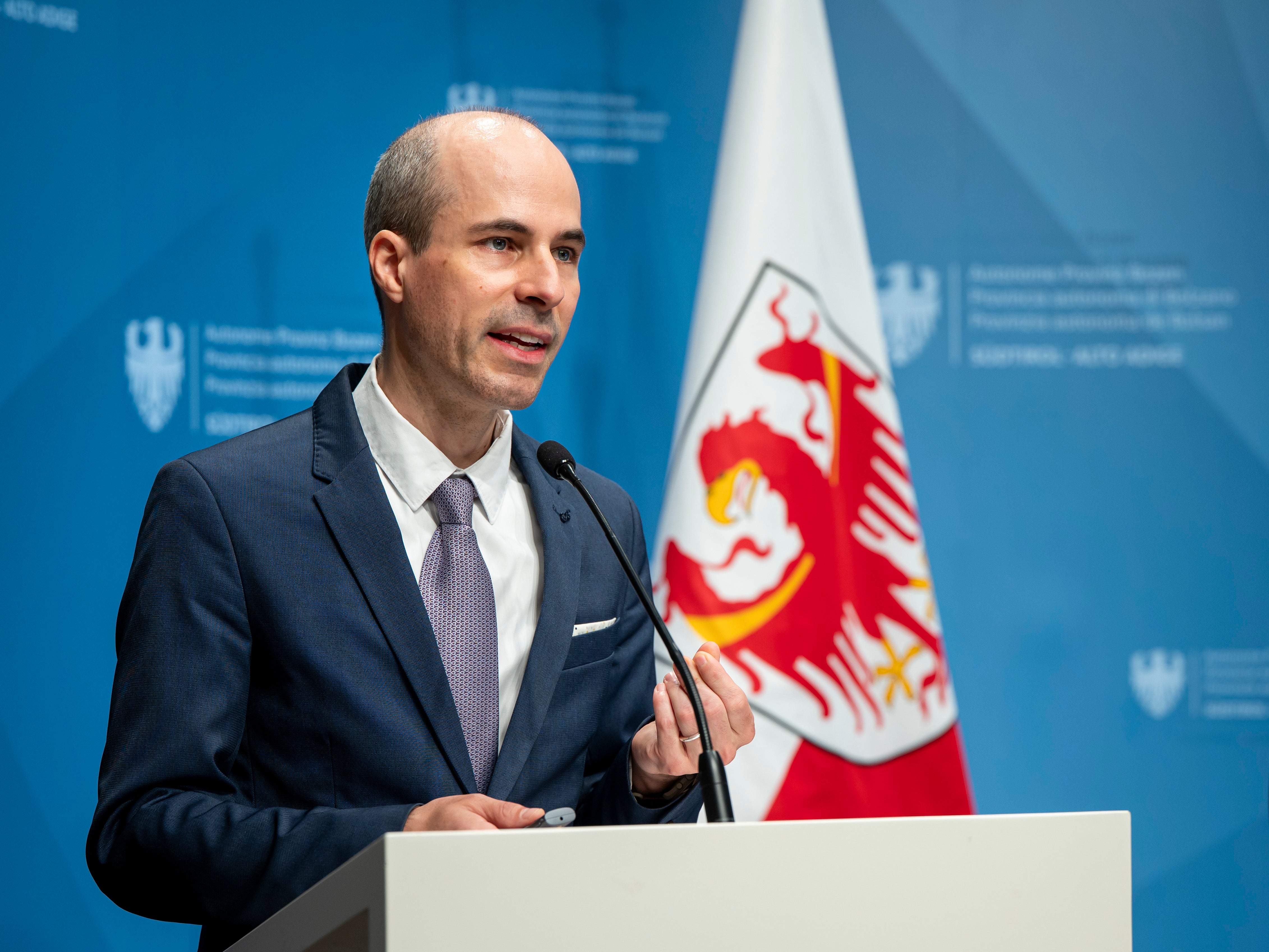 - „Wir haben das ASTAT-Panel genutzt, nach Geschlecht, Alter und Gebiet geschichtet und rund 900 Fragebögen verteilt“, erklärte Timon Gärtner, der Direktor des Landesinstituts für Statistik (ASTAT) zur Methodik. (Foto: LPA/Fabio Brucculeri) » [IMG 2 MB]