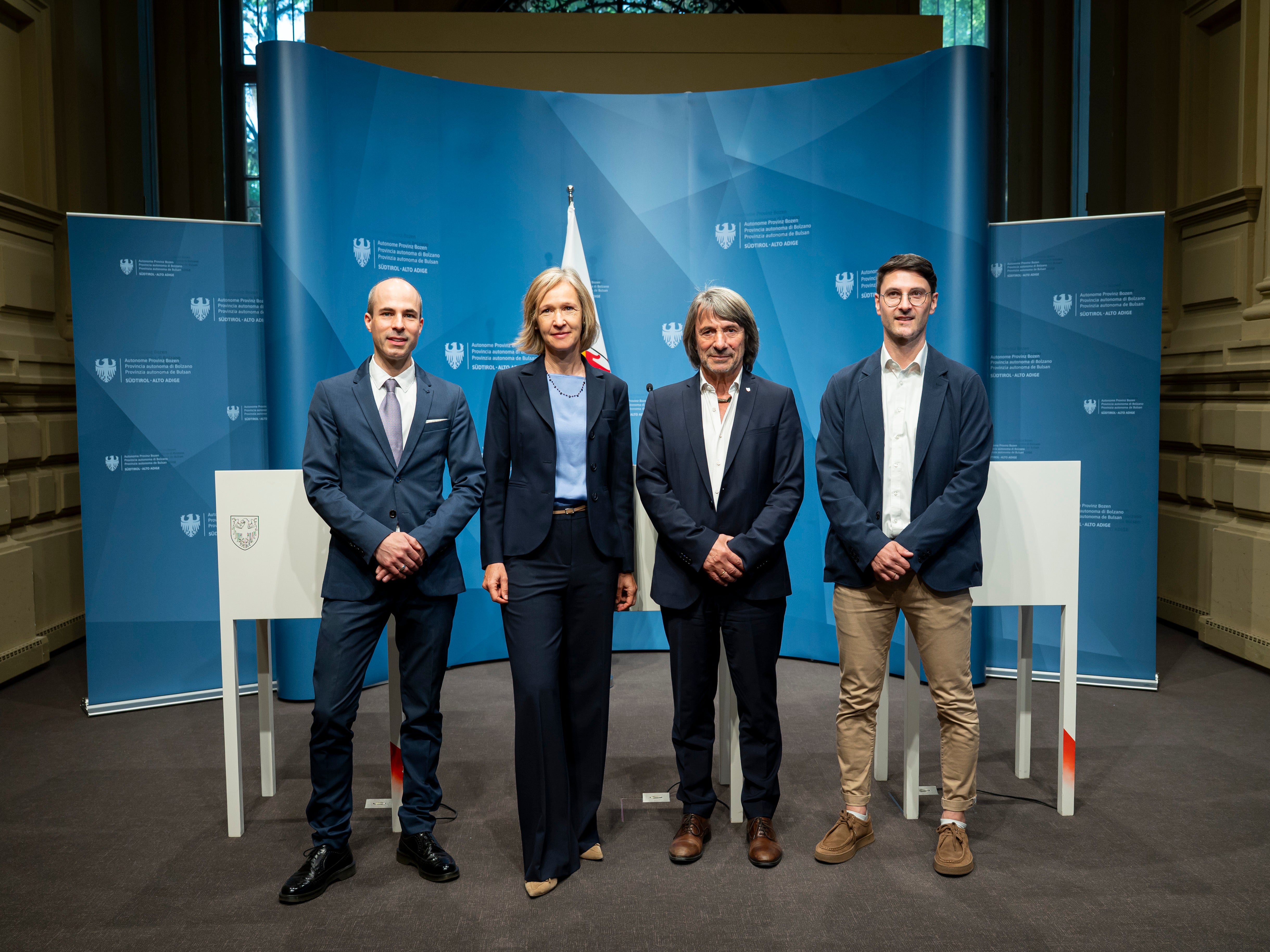 - Eine neue Studie zur Akzeptanz und Nützlichkeit der KI in der Gesundheitsversorgung wurde am 27. April vorgestellt (im Bild von links): Timon Gärtner, der Direktor des Landesinstituts für Statistik ASTAT, die Präsidentin des Instituts für Allgemeinmedizin und Public Health Bozen Doris Hager-Prainsack, Landesrat Hubert Messner und Studienleiter Dietmar Ausserhofer. (Foto: LPA/Fabio Brucculeri) » [IMG 3 MB]