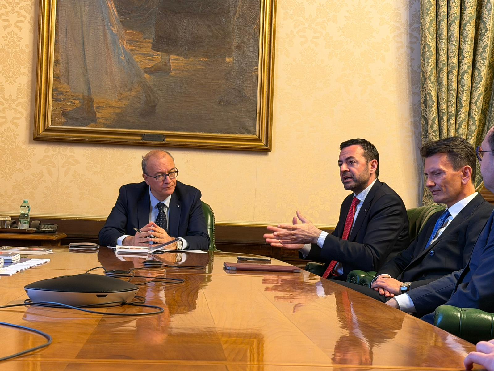 - "Die seit April 2025 aktiven territorialen Bildungsräume ermöglichen es, die Zusammenarbeit von Schule und lokalen Bildungsträgern zu stärken", sagte Landesrat Marco Galateo (Mitte) beim Treffen mit Minister Valditara (links). (Foto: LPA) » [IMG 270 kB]