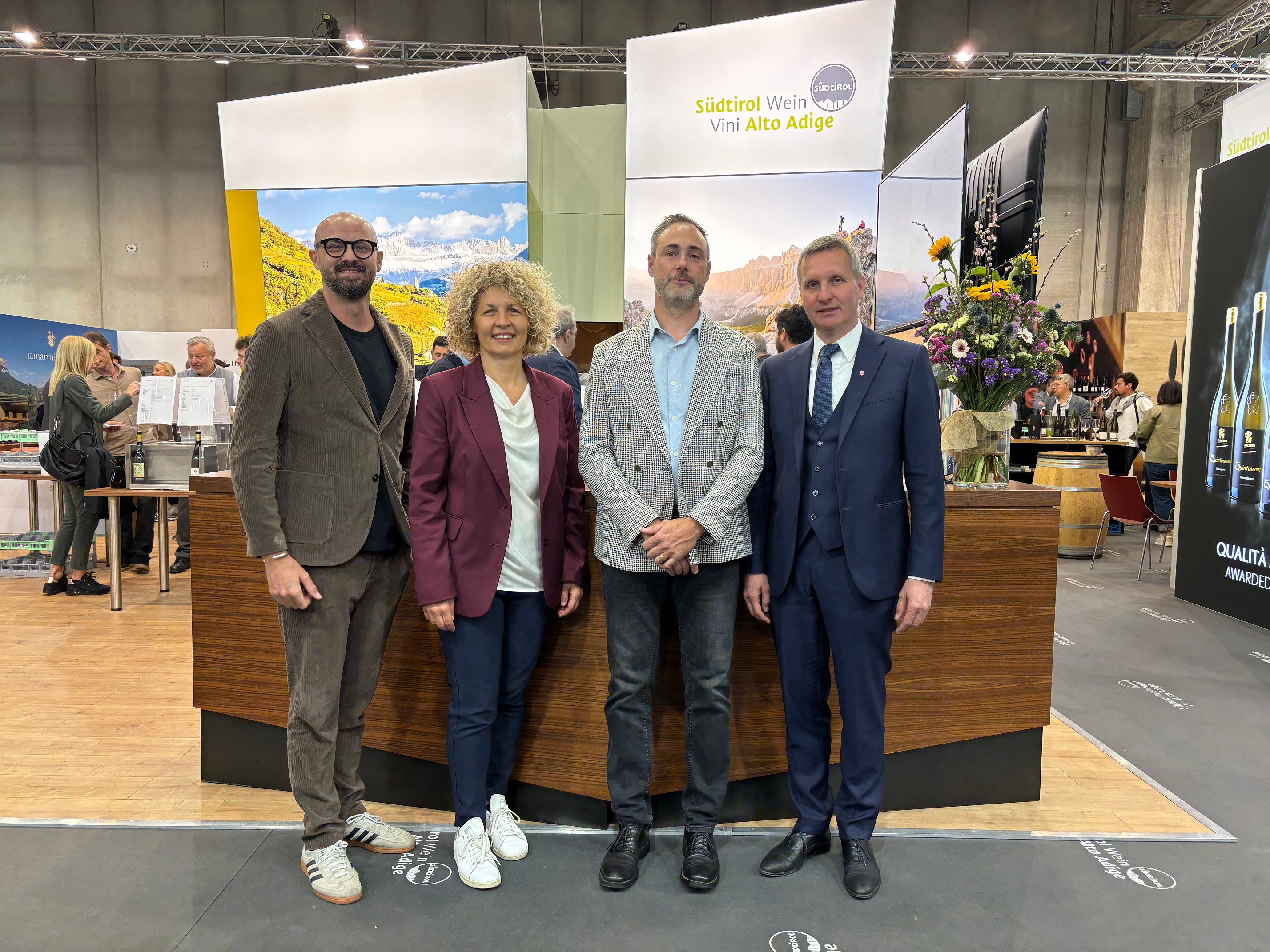 - Landesrat Luis Walcher (ganz rechts) mit (von links) Eduard Bernhart (Direktor Konsortium Südtirol Wein), Margit Gamper (IDM), Andreas Kofler (Präsident Konsortium Südtirol Wein) (Foto: LPA/Ressort Landwirtschaft, Forstwirtschaft und Tourismus/sp) » [IMG 2 MB]