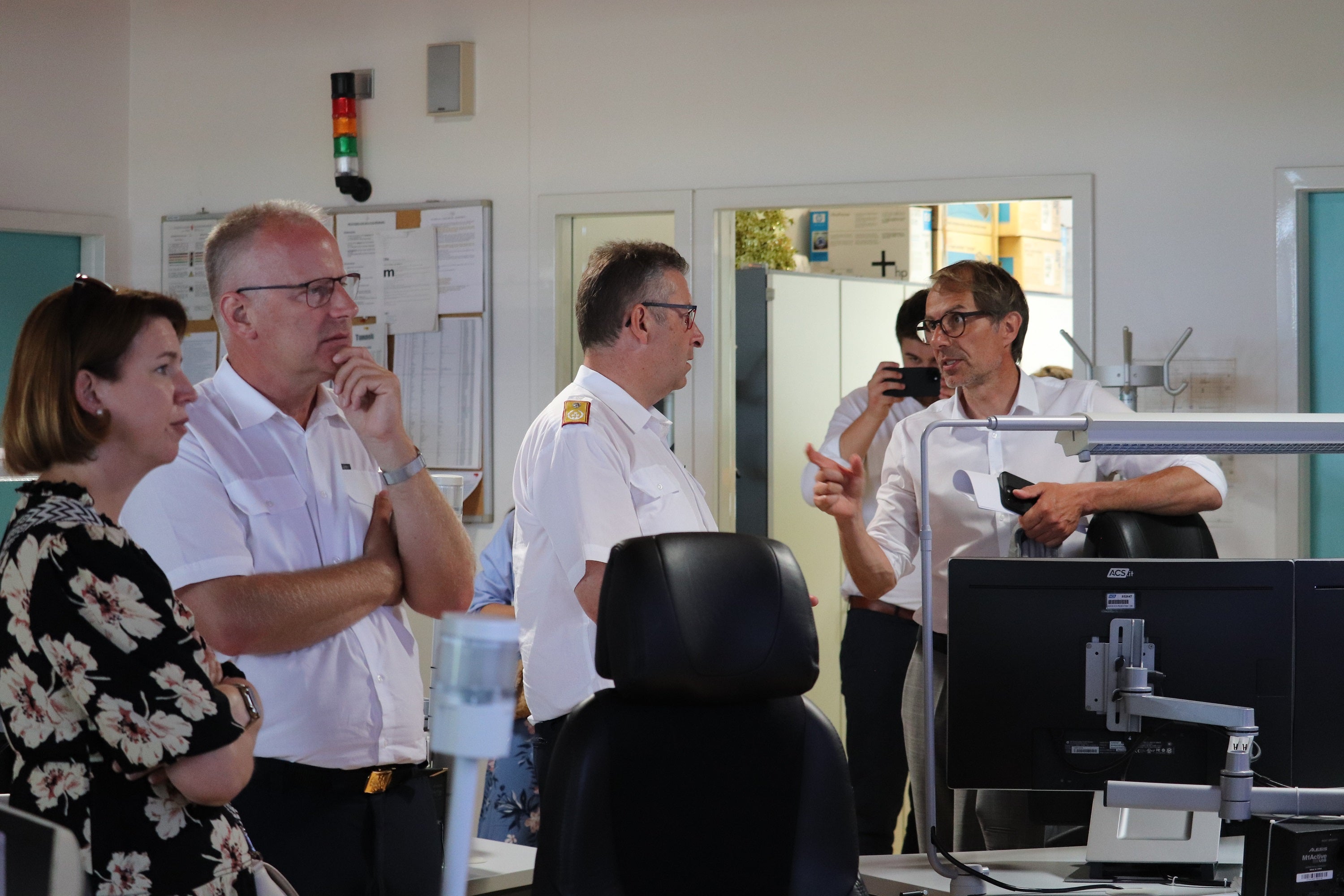 - Landeslagezentrum erklärt: Berufsfeuerwehrkommandant Florian Alber im Gespräch mit der Delegation aus Oberösterreich (Foto: LPA/Maja Clara) » [IMG 1 MB]