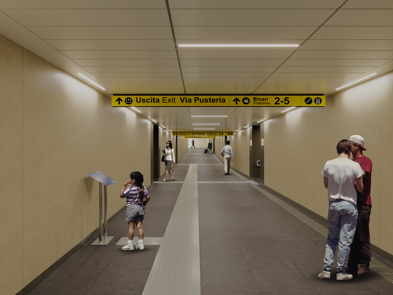 Zu den zentralen Maßnahmen des Abkommens zählen erhöhte Bahnsteige, die einen barrierefreien Zugang zu den Zügen ermöglichen. (Rendering: Gruppo FS)