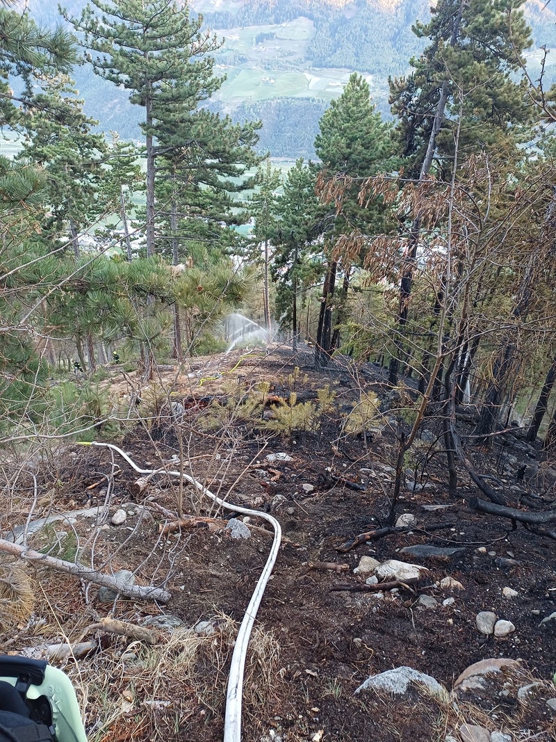 - Nach etwas mehr als einer Stunde konnte der Brand unter Kontrolle gebracht werden. (Foto: LPA/Forstinspektorat Schlanders) » [IMG 2 MB]