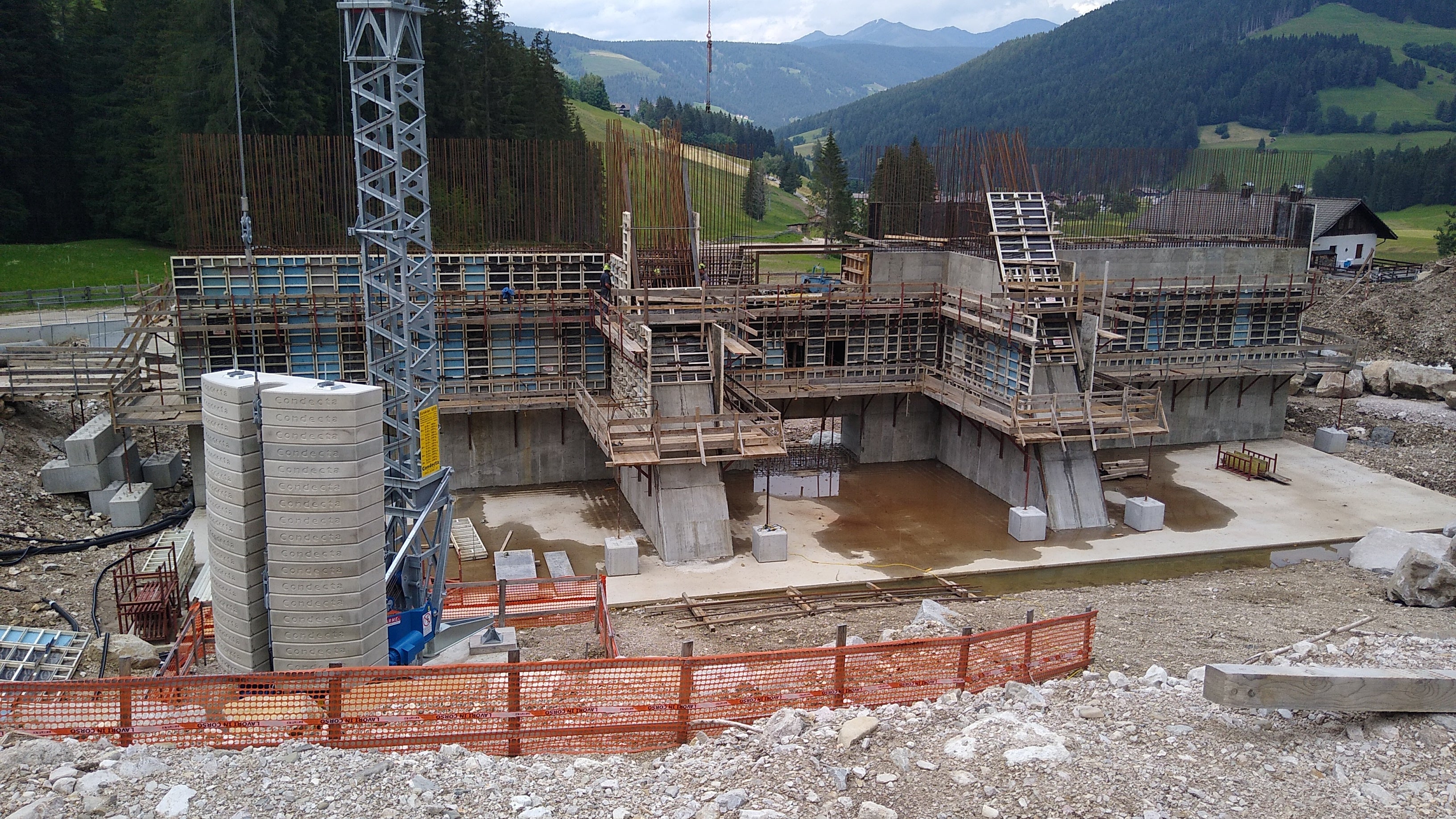 Der Bautrupp der Agentur für Bevölkerungsschutz hat mit den Arbeiten unter der Bauleitung von Martin Moser und mit Vorarbeiter Armin Oberarzbacher im Frühjahr 2019 begonnen. Bis Ende 2019 konnten die Arbeiten am Unterlauf des Schadebaches mit der Errichtung mehrerer Konsolidierungssperren aus Stahlbeton abgeschlossen werden. Im Frühjahr 2020 wurden die Arbeiten am Pragserbach fertiggestellt und bis zum Wintereinbruch auch die über 14 Meter hohe Rückhaltesperre im Schadebach. Mit der Errichtung der insgesamt 650 Meter langen und bis zu 16 Meter hohen Dämme zur Begrenzung des Rückhaltebeckens wurden die Bauarbeiten schließlich im heurigen Jahr beendet. Mit einem Fassungsvermögen von über 100.000 Kubikmetern ist dieses Rückhaltebecken das größte dieser Art in Pustertal, legt Bauleiter Moser dar.