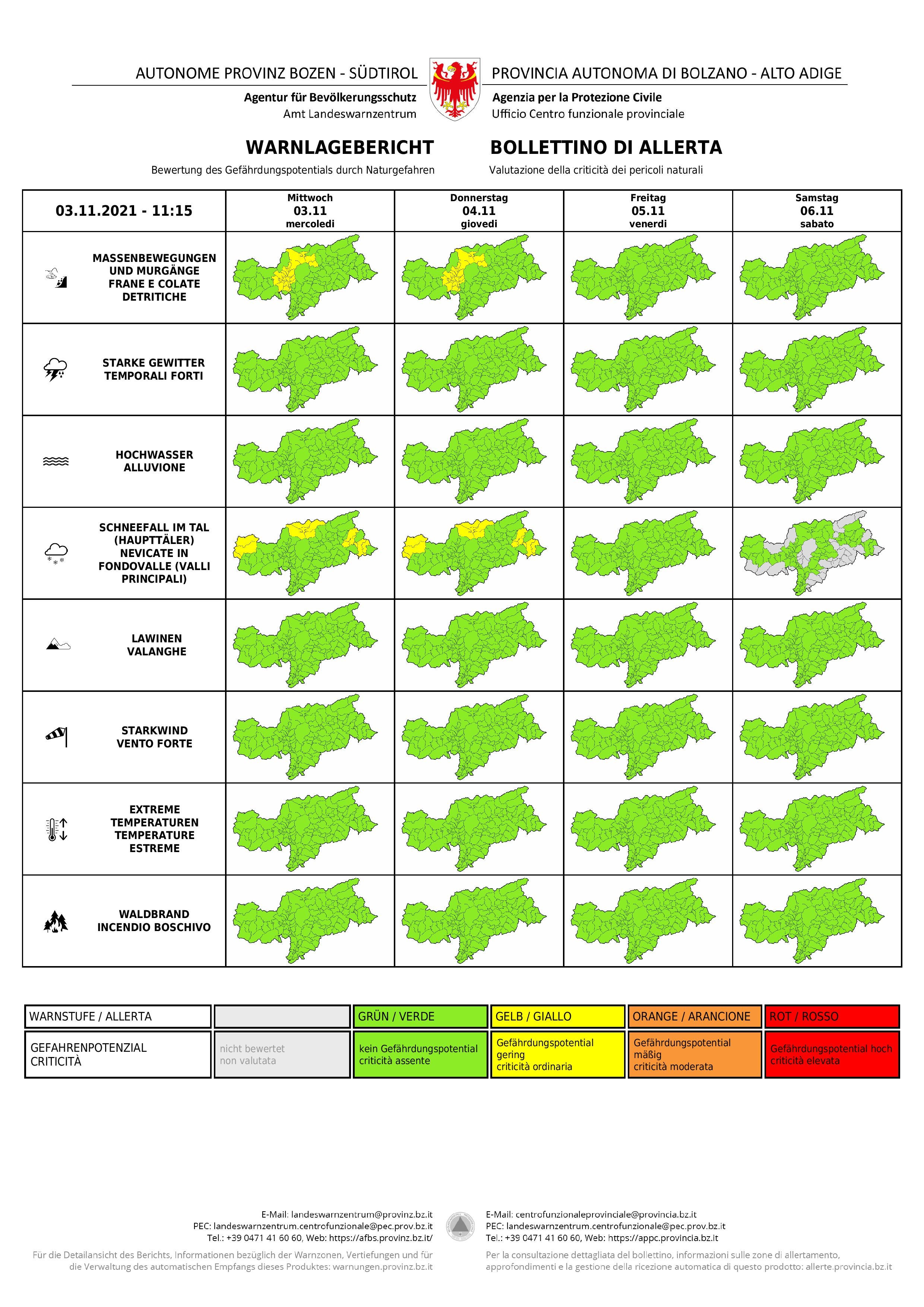 Weitere Detailinformationen zum Warnlagebericht und zum Warnsystem: warnungen.provinz.bz.it