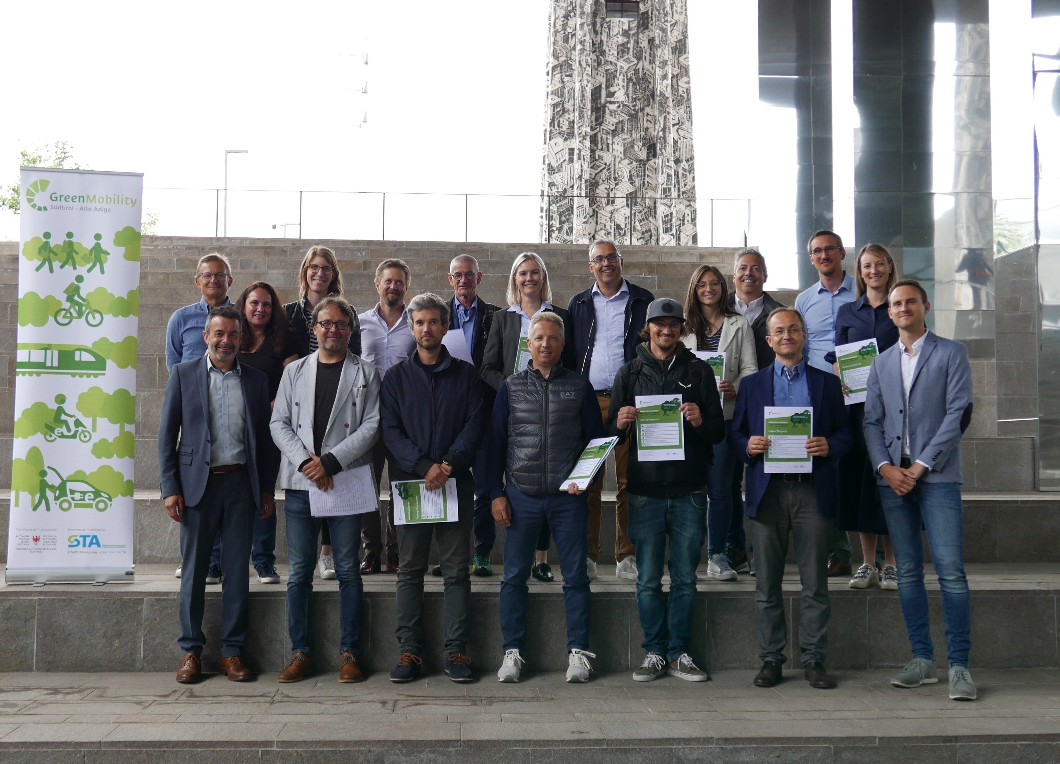 Drei Monate lang haben sich 19 Verantwortliche in Politik und Verwaltung sowie Planende von Mobilitätsinfrastruktur, Selbständige und Angestellte aus der Privatwirtschaft intensiv mit dem Thema der nachhaltigen Mobilität auseinandergesetzt. Beim fünften "Mobilitätslehrgang", organisiert von Green Mobility in der Südtiroler Transportstrukturen AG (STA) gemeinsam mit der Klimahaus-Agentur, haben sich die Teilnehmenden hauptsächlich mit Mobilitätsthematiken auf Gemeindeebene befasst und den öffentlichen Nahverkehr in den Vordergrund gestellt. Eine Exkursion führte auch zu Best Practices in der Schweiz.