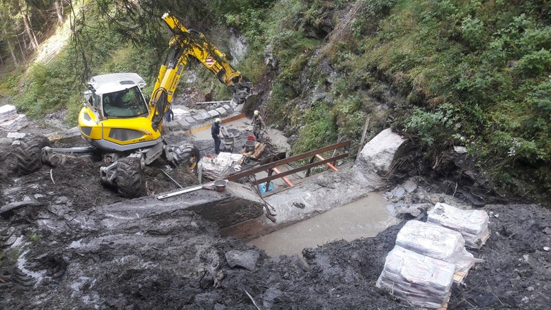 Wildbachverbauung saniert Sperren und errichtet Brücke im Wadlbach