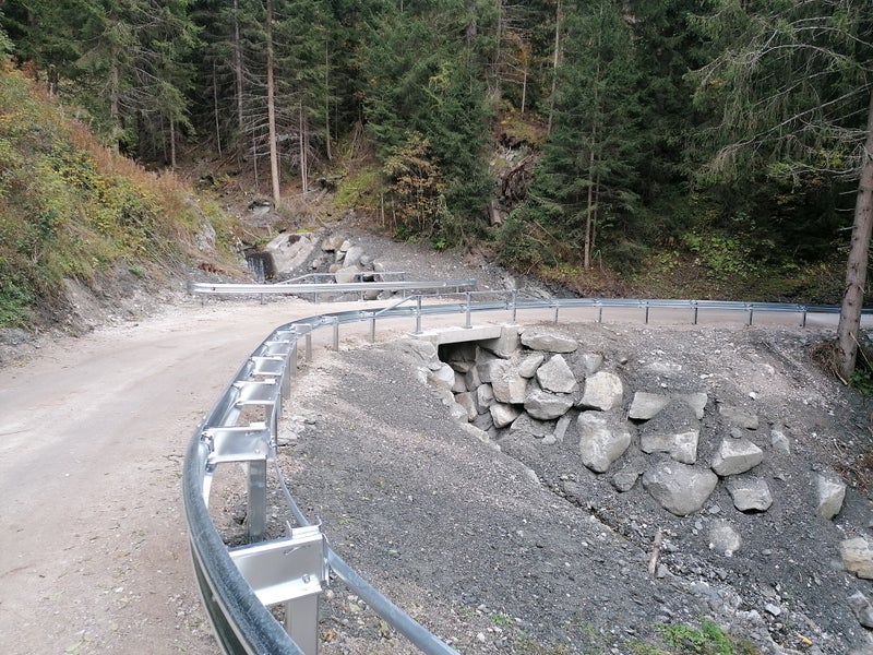 Zudem wurde die bestehende Verrohrung bei der Zufahrt in Richtung Außerberg durch eine neue Brücke aus Stahlbeton mit abnehmbaren Elementen ersetzt. Diese können bei Bedarf entfernt werden, wodurch die Räumung des Durchlasses erfolgen kann. Talseitig sowie bergseitig wurde eine Abgrenzung mit Straßenleitplanken angebracht. Die vorgesehene Asphaltierung wird in Kürze erfolgen. Zudem wurde die vorhandene Rückhaltesperre geräumt sowie das Schadholz aus dem Bachbett entfernt.