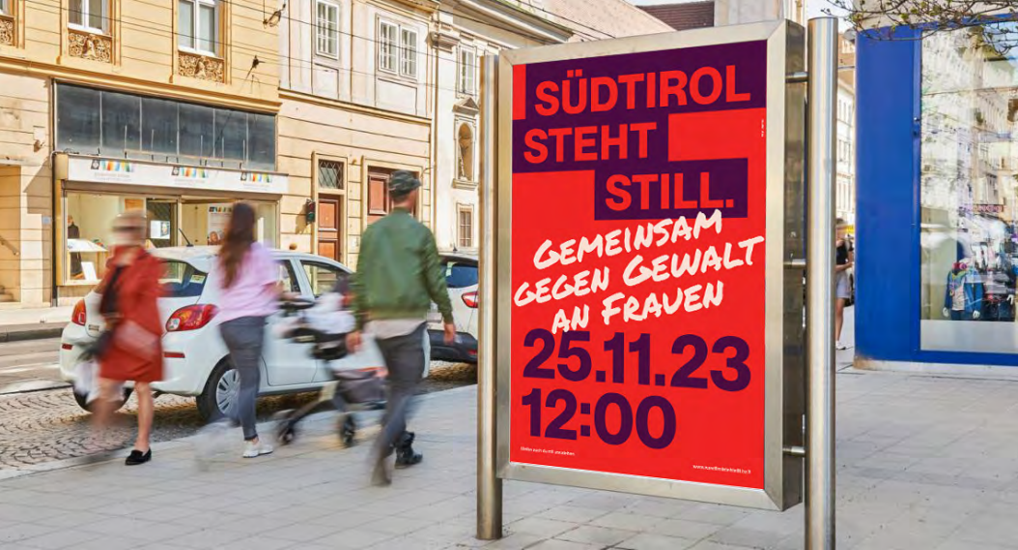 In occasione della Giornata internazionale contro la violenza sulle donne 2023 è stata organizzata l'iniziativa, condivisa tra molte associazioni locali, L'Alto Adige si ferma. Il 25 novembre, alle ore 12.00, tutta la popolazione altoatesina è stata invitata a fermarsi per due minuti di silenzio: un momento collettivo di raccoglimento, simbolico ma potente, per dimostrare solidarietà verso le vittime e promuovere un cambiamento sociale necessario.