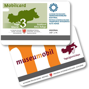 La Mobilcard consente di viaggiare a bordo dei mezzi del trasporto pubblico in Alto Adige, sia autobus che treni. Sono inclusi i Citybus, le linee autobus urbane ed extraurbane, diverse funivie e tutti i treni regionali (l'offerta per 3 giorni consecutivi è di 18 Euro, per 7 giorni di 22 Euro).