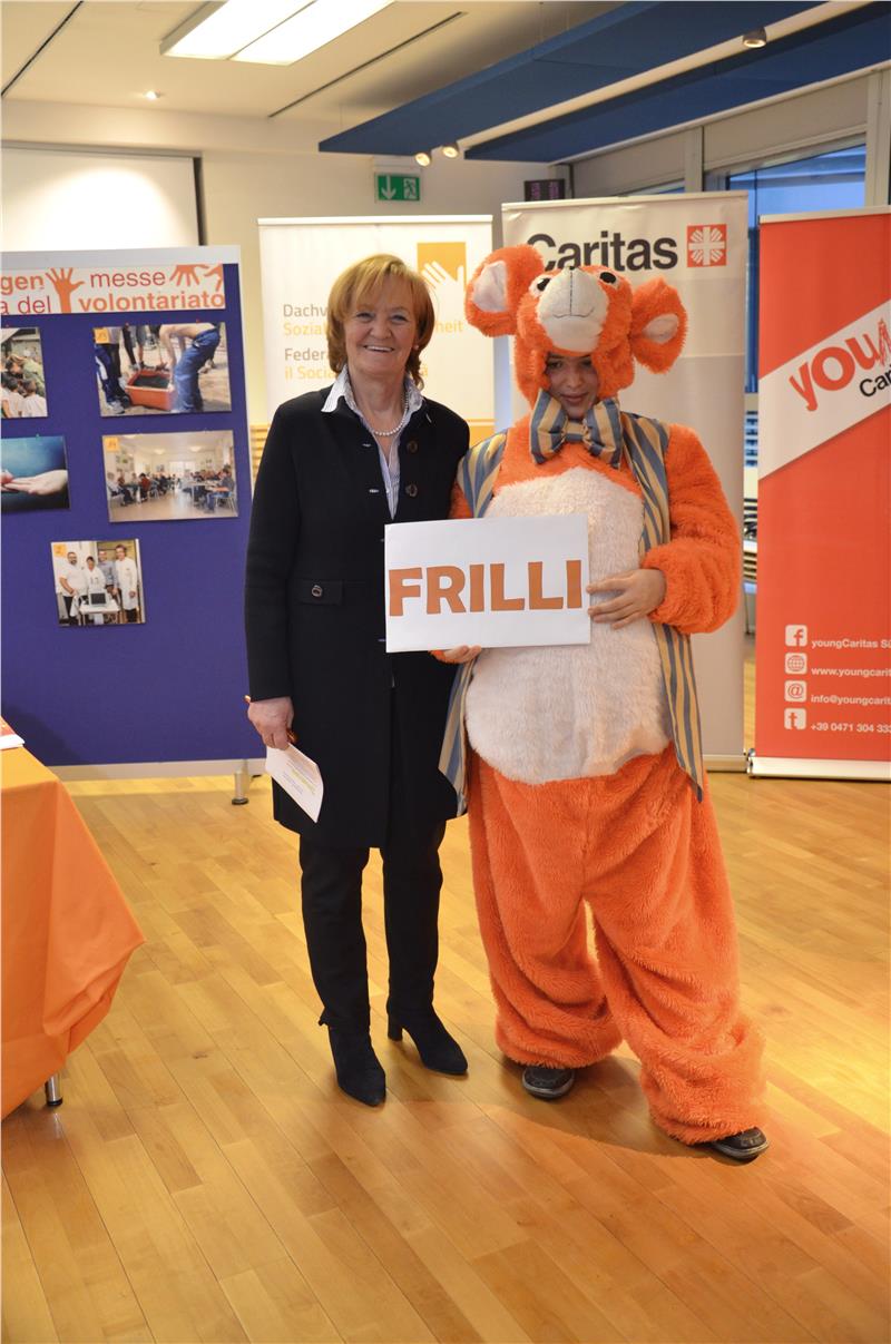 Durante la Fiera del Volontariato, che si è svolta dal 23 al 26 novembre, oltre 40 associazioni locali hanno avuto modo di presentare ai numerosi visitatori la loro attività. Nell’ambito della fiera si è svolto anche un concorso fotografico incentrato sulle associazioni presenti alla manifestazione e sono state distribuite delle schede per votare il nome della mascotte della manifestazione. Tra le 167 proposte formulate dal pubblico, la scelta della giuria, composta da Karin Hört (Lebenshilfe), Antonia Lamarucciola (Il Melograno), Margreth Weber (Caritas&Comunità), Silvia Di Panfilo (youngCaritas) e Sonia Simonitto dell’Ufficio anziani e distretti sociali, è ricaduta sul nome Frilli. È stato consegnato un premio a Paola Ferrari che ha proposto il nome ed a Petra Redolf dell'associazione CIRS che ha realizzato il costume della mascotte.