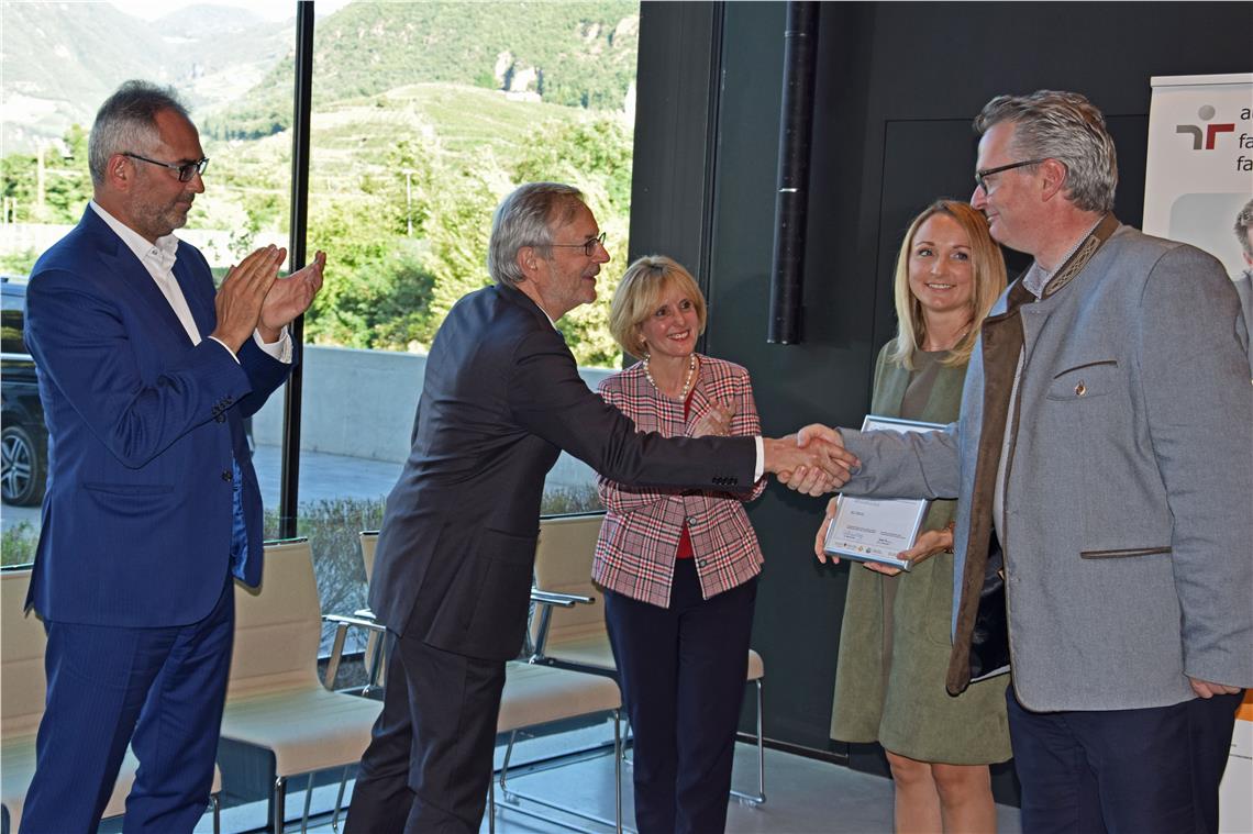 L’impresa Mila è la seconda azienda altoatesina a ricevere la certificazione Audit famiglia e lavoro. Cerimonia di consegna con l'assessora Deeg e il presidente della Camera di Commercio, Michl Ebner.