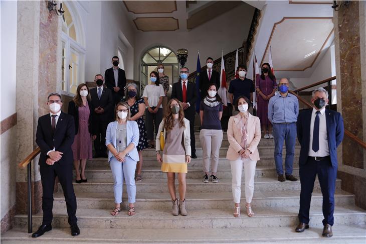 Formare e aggiornare personale della pubblica amministrazione già in possesso di un’elevata qualificazione, rafforzare lo scambio fra le istituzioni dell’Euregio Tirolo-Alto Adige-Trentino. Questo l’obiettivo del Master Euregio in pubblica amministrazione lanciato nel 2018 dal GECT Euregio in collaborazione con le Università di Innsbruck, Trento e Bolzano. I primi 36 partecipanti al master hanno concluso le 1.500 ore di corso, per un totale di 60 crediti formativi, sostenendo a fine 2020 l’esame conclusivo. Undici di essi sono altoatesini, e nel corso di una cerimonia svoltasi oggi (11 giugno) a Palazzo Widmann hanno ricevuto i loro diplomi dal presidente della Provincia, Arno Kompatscher, dalla vice-rettrice dell’Università di Bolzano, Stefania Baroncelli, dal direttore generale della Provincia, Alexander Steiner, e dal direttore dell’Ufficio comune dell’Euregio, Christoph von Ach.