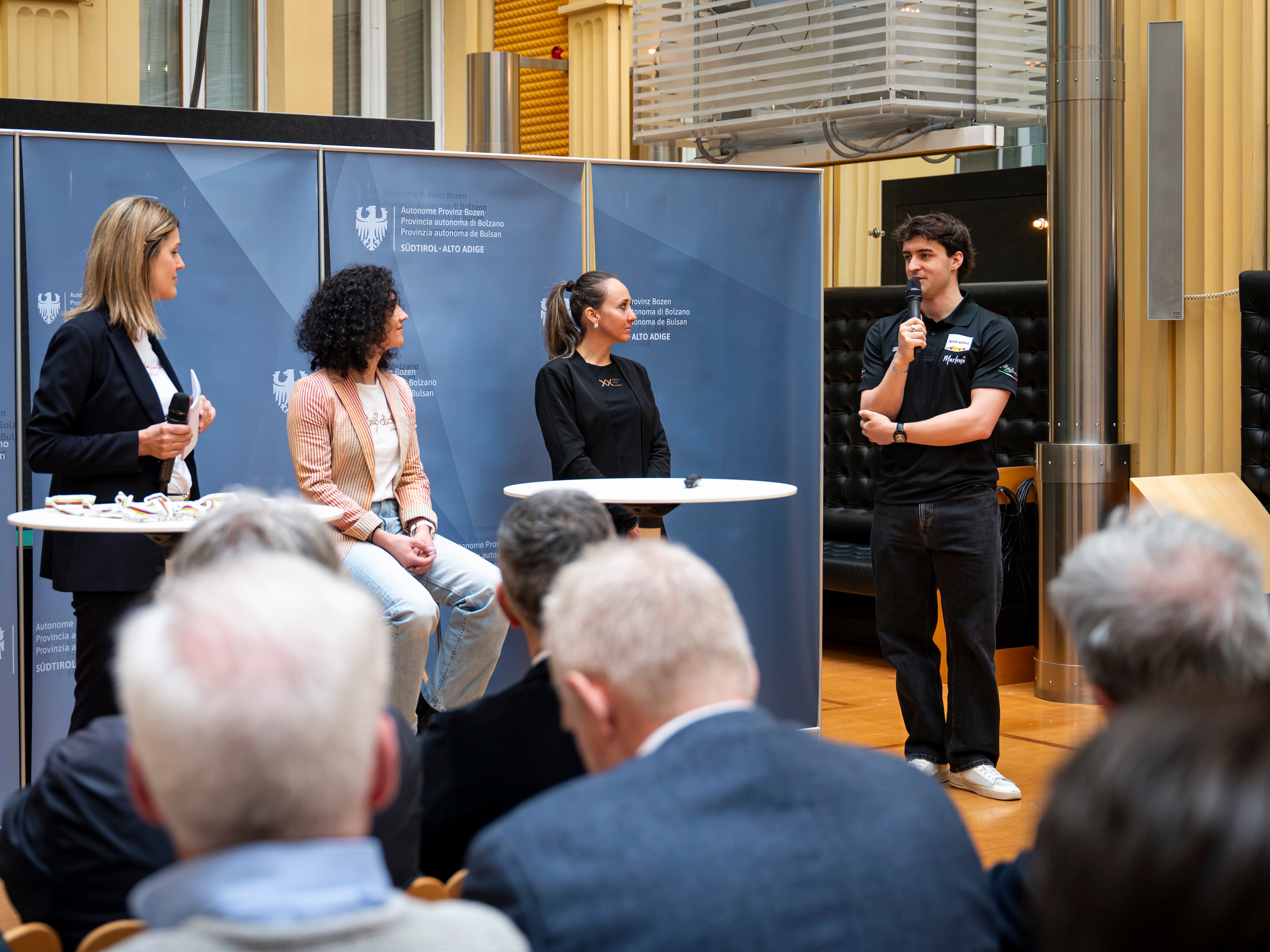 - La passione per lo sport in Alto Adige. Nella foto (da sinistra) la direttrice dell'Agenzia di stampa e comunicazione della Provincia Claudia Messner, che ha moderato l'evento di presentazione dell'annuario, Evelin Lanthaler, Eva Lechner e Matteo Bianchi. (Foto. USP/Fabio Brucculeri) » [IMG 2 MB]