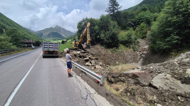 A causa di una colata detritica nella sorgente di Madonna di Senales, il 19 luglio la strada principale della Val Senales è stata bloccata, ma è rimasta sempre aperta al traffico. Il bacino di contenimento sul lato a monte della strada principale ha fatto il suo dovere e ha trattenuto i detriti, spiega il capocantiere Martin Eschgfäller. Gli operai, insieme al caposquadra Martin Müller, hanno svuotato il bacino pieno e un'altra area di ritenzione più piccola sopra la strada di accesso al Gfallhof e hanno ripristinato la sezione massima di drenaggio idraulico lungo l'intero corso del torrente con una trincea. I lavori di ripristino della protezione dalle alluvioni sono stati completati dopo circa tre settimane, con l'aiuto di diverse macchine per il movimento terra e di un camion.