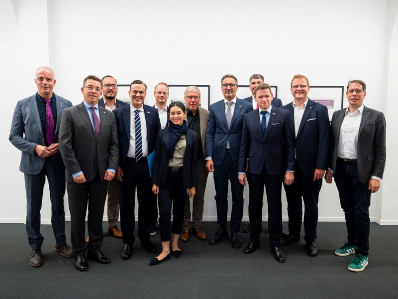Undici deputati del Parlamento dell'Assia Hanno incontrato il presidente della Provincia Arno Kompatscher a Bolzano per discutere di autonomia e tutela delle minoranze. Nella foto, da sinistra a destra: Thomas Hering, Stefan Schneider, Jochen Roos, Stephan Naas, Christoph Mikuschek, Anna Nguyen, Jürgen Frömmrich (capo delegazione), il presidente della Provincia Arno Kompatscher, Matthias Körner, André Stolz, Sebastian Sommer, Torsten Leveringhaus. (Foto: USP/Fabio Brucculeri)
