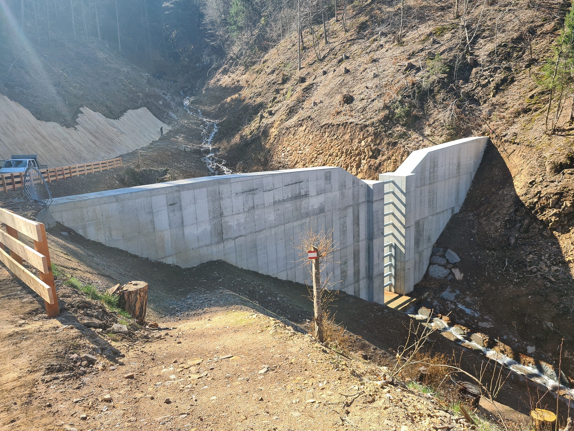 È previsto il rinnovo della briglia di trattenuta esistente nel tratto intermedio. Nel tratto inferiore, nell'inverno 2023/2024 il gruppo guidato dal caposquadra Helfer ha già costruito un'altra briglia di trattenuta.