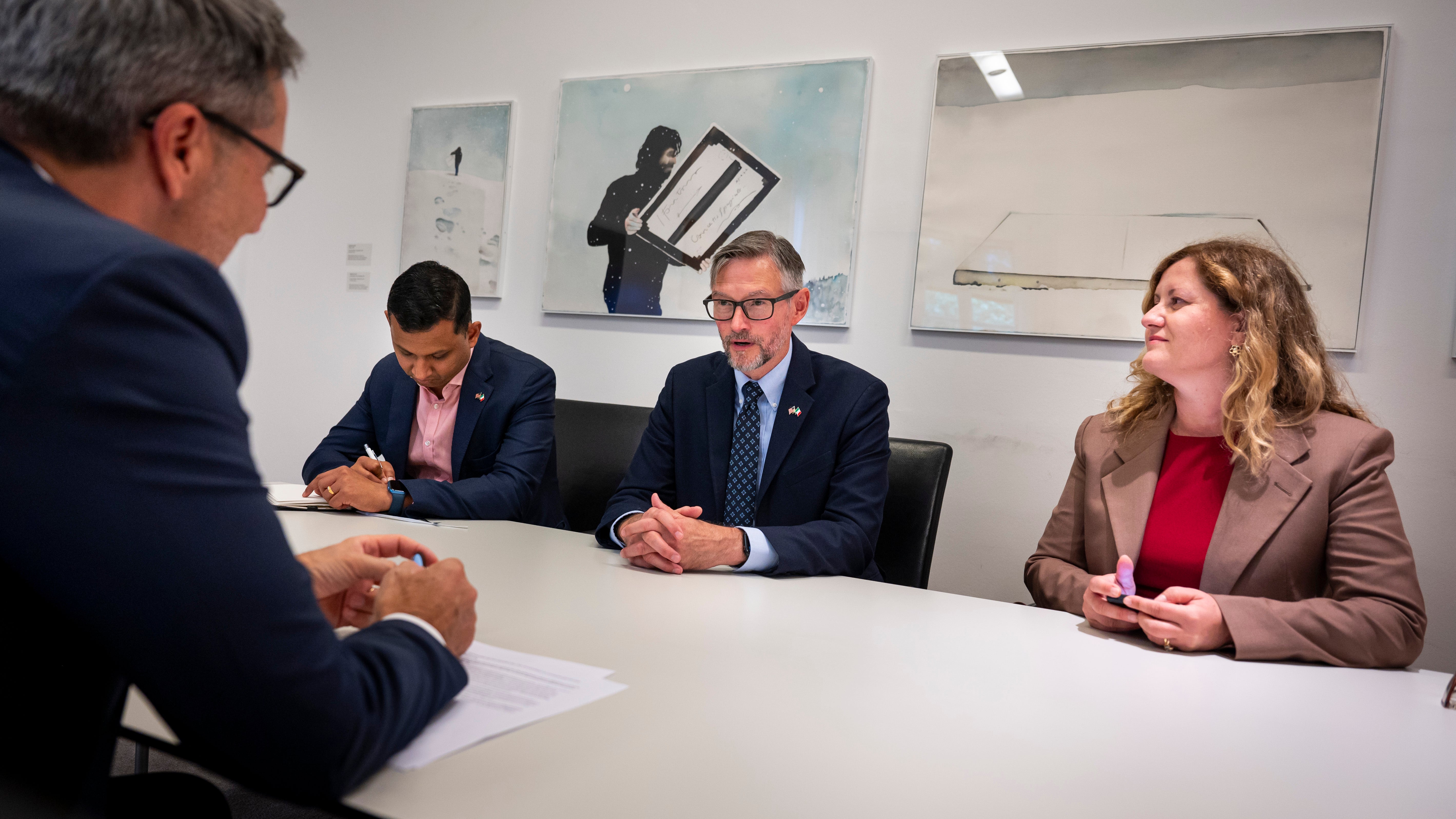 - Il colloquio tra il presidente Kompatscher e il console generale degli Stati Uniti a Milano, affiancato da Sunil Ravi, coordinatore per le Olimpiadi 2026 presso il Consolato generale degli Stati Uniti a Milano, e Alessia Pastorutti, Political Specialist presso il Consolato generale degli Stati Uniti a Milano (Foto: USP/Fabio Brucculeri) » [IMG 3 MB]