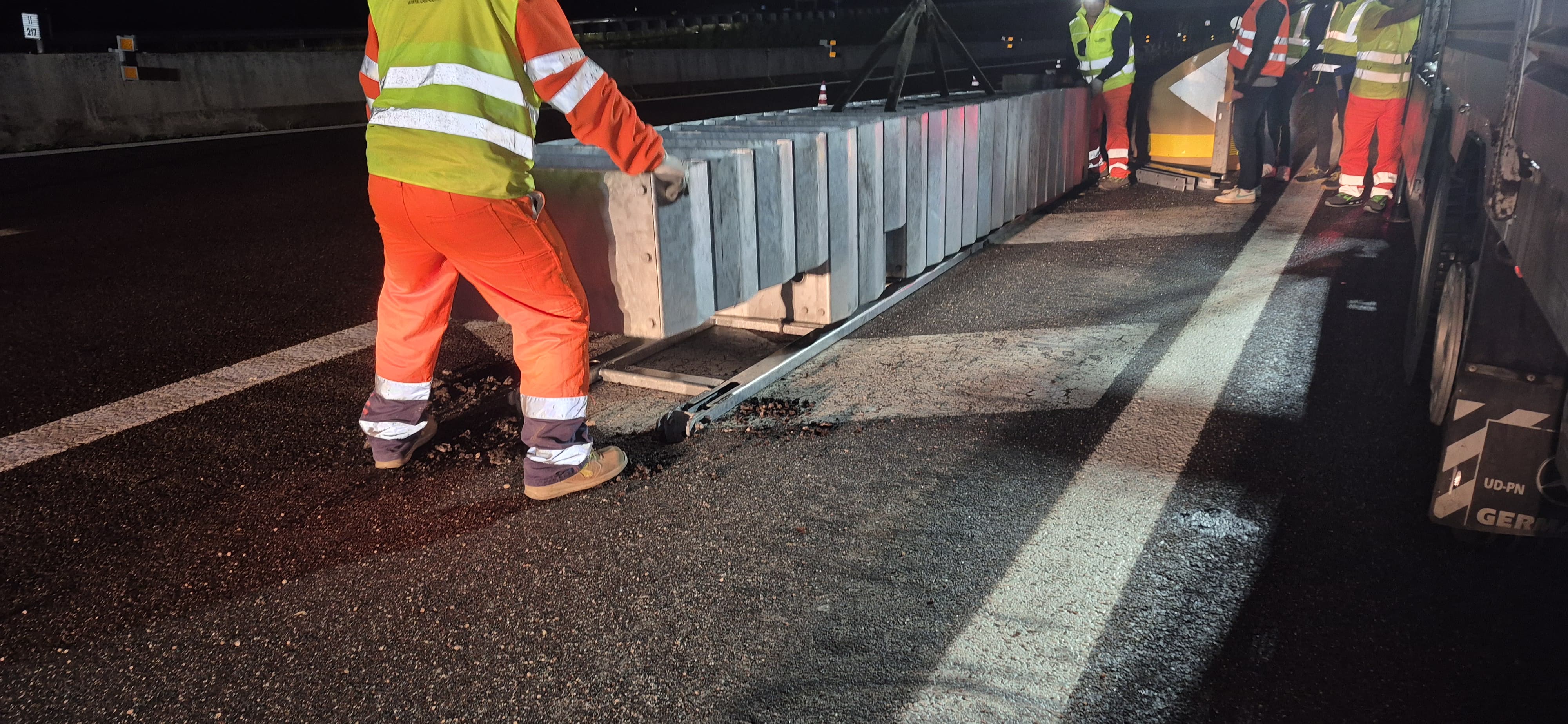 - Gli attenuatori d'urto sono stati installati di notte per non disturbare troppo il traffico sulla superstrada Merano-Bolzano. (Foto: USP/Alberto Lenisa) » [IMG 793 kB]