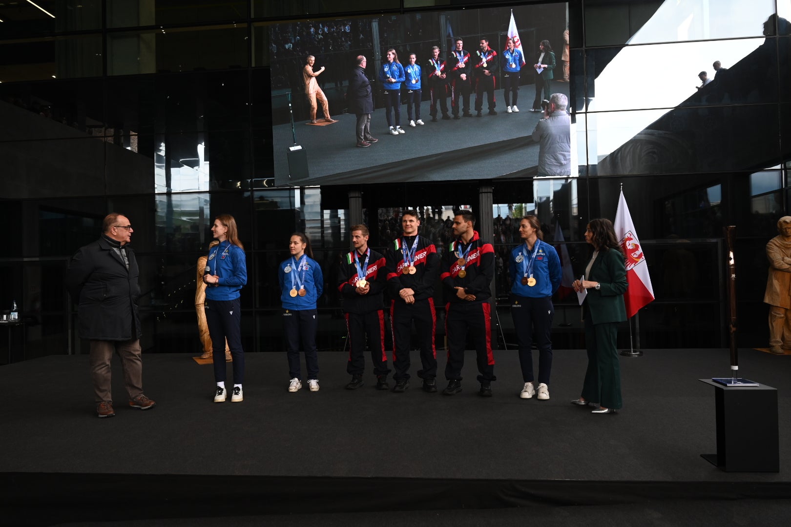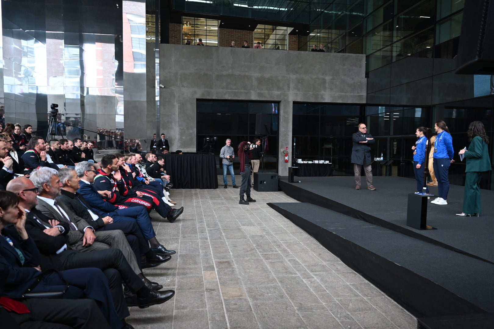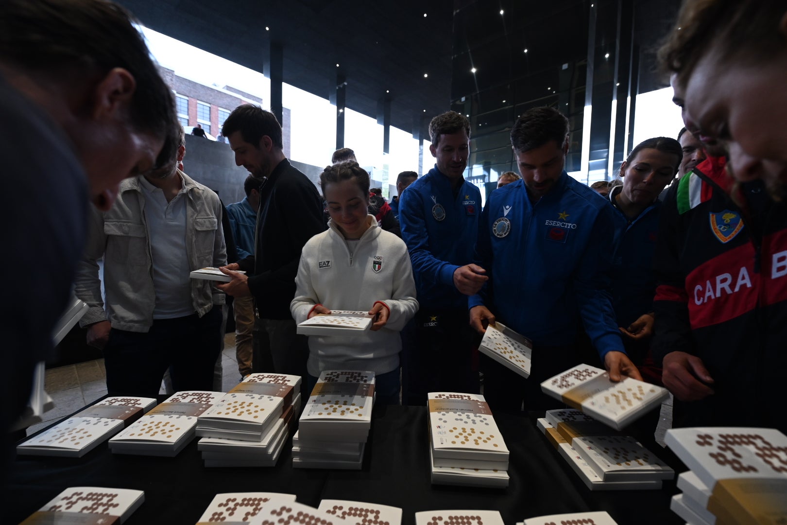 Alla fine dell’evento foto, sorrisi, emozioni e il brindisi di rito per tutti, con un occhio, per molti, già rivolto all’appuntamento con i Giochi olimpici e paralimpici del 2030 sulle Alpi francesi.