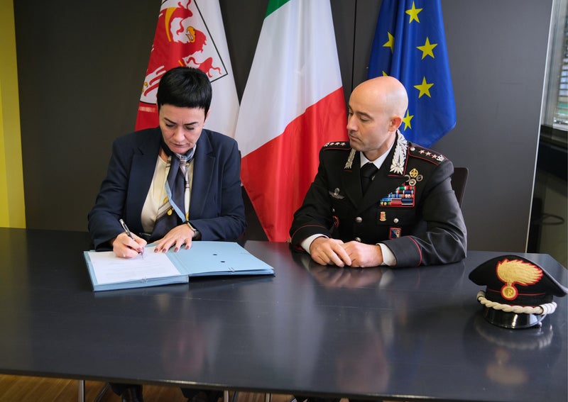 BOLZANO (LPA). Il comandante provinciale dei Carabinieri, colonnello Raffaele Rivola, e l'assessore provinciale alla Sicurezza e alla Prevenzione della violenza, Ulli Mair, hanno firmato ieri (21 ottobre) un accordo di cooperazione. In base a tale accordo, la Provincia potrà acquistare attrezzature aggiuntive per favorire l’attività del personale dei Carabinieri in servizio in Alto Adige. Un accordo simile era già stato recentemente siglato con il questore Paolo Sartori (leggi il comunicato stampa dell'USP).
