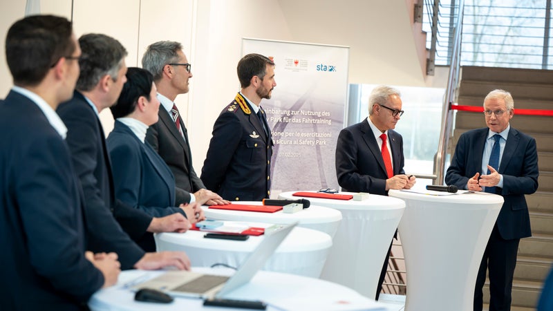 VADENA (USP). È stata firmata una convenzione tra Provincia autonoma di Bolzano, Dipartimento della Pubblica Sicurezza del Ministero dell’Interno e Strutture Trasporto Alto Adige SpA (Sta), per consentire alla Polizia di Stato di utilizzare il Safety Park per le esercitazioni di guida sicura. L’iniziativa è stata presentata in loco nel pomeriggio di venerdì 7 febbraio.