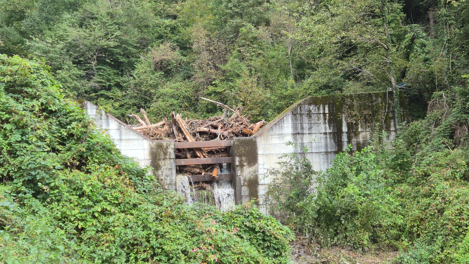 - Detriti galleggianti e legname selvatico hanno riempito un bacino di ritenzione nel rio della Clava; la struttura protettiva ha svolto appieno la sua funzione, trattenendoli. (Foto: USP/Ufficio Sistemazione bacini montani ovest/Jan Kobald) » [IMG 440 kB]